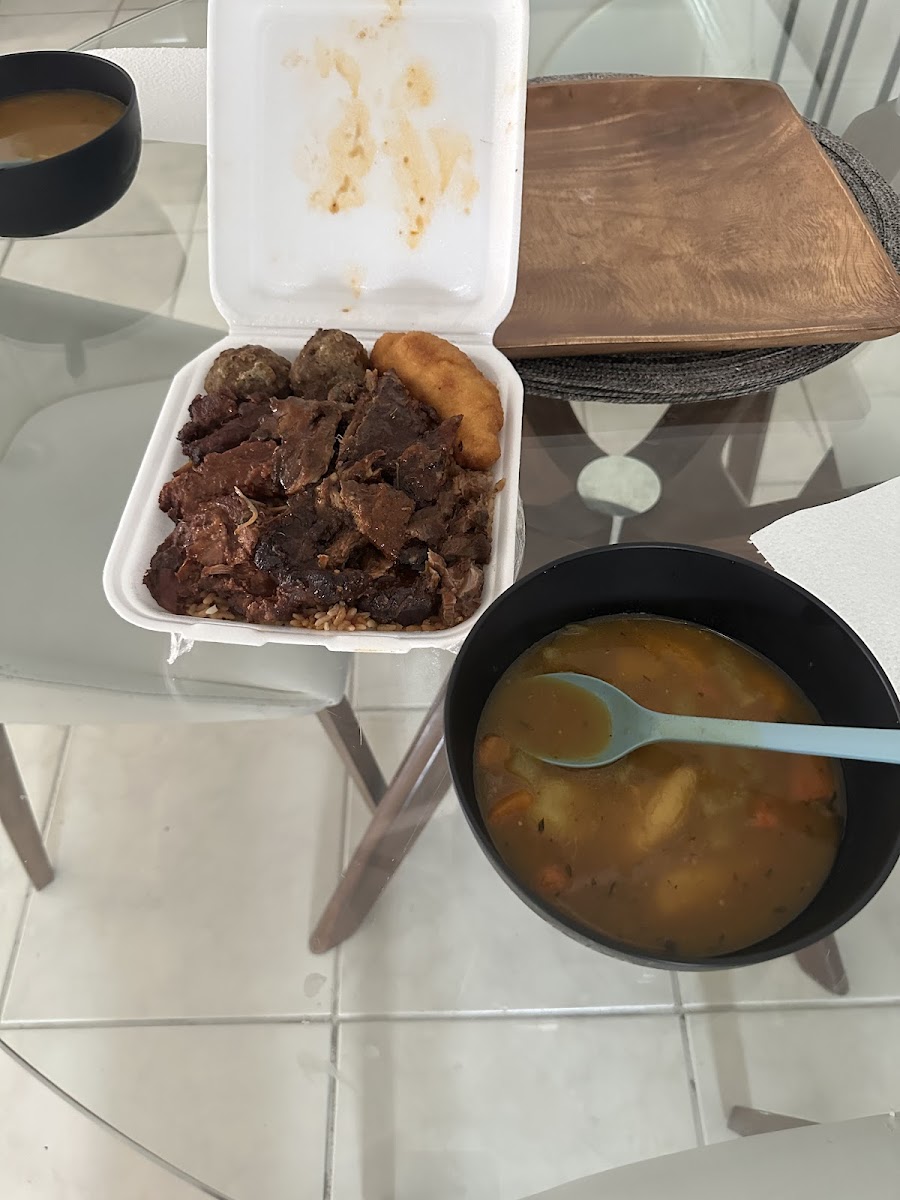 “ This spot is special. Staff is kind , generous and super wholesome. The food is fire. Even my picky eaters were fighting over the brown stew and rice. Already planning my next visit and taking family with me. If you plan on dining in know that there’s 2 tables available. This spot is small and chill ”